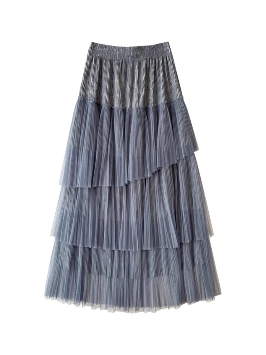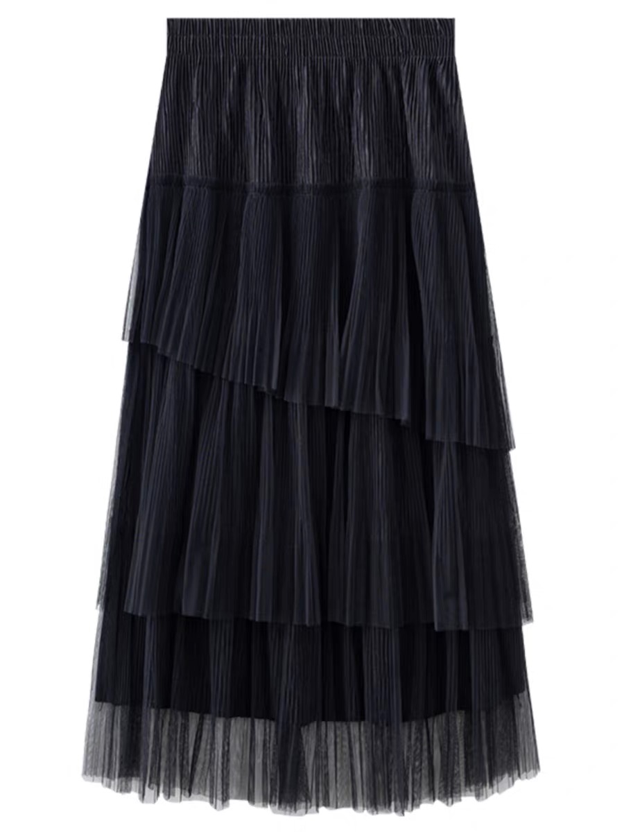 The multi-layered tulle material creates a light, slender and gorgeous look. This is an attractive piece. The soft, swaying silhouette is full of femininity, and the elastic waistband brings a comfortable fit, making it perfect for everyday wear. The naturally soft pleats emphasize the vertical lines, and the fluffy and loose A-line cut covers the natural body shape.
