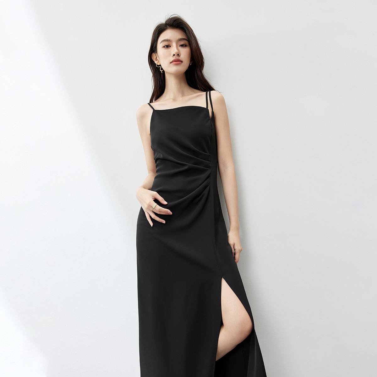• Satin Waist-slimming Temperament Dress