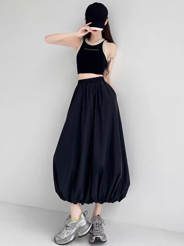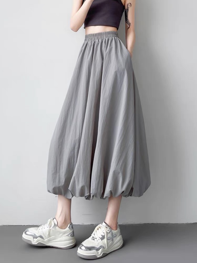 AA long skirt that flares out in an A-line shape. It's a fluffy skirt with lots of fabric and luxurious materials. It has volume and a lovely silhouette. The flared skirt and elegant curves make you fall in love at first sight. No pressure and cover your body shape! The appropriately high waistline will also make your hips look higher. It adds length to your legs and makes you look slimmer. The waist is made of thick and wide elastic band, which will not feel tight and can be worn for a long time without any pressure! This is a wonderful skirt that sways as you walk.