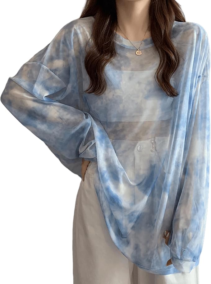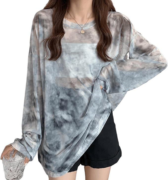 • Ancient tie-dye design thin sun protection clothing blouse for women