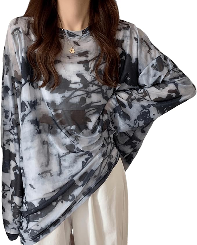Ancient tie-dye design thin sun protection clothing blouse for women