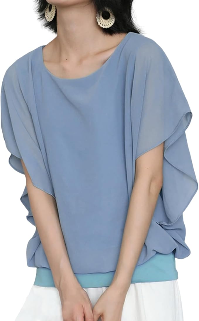Made of soft and breathable material, it is comfortable to wear. This light, gorgeous and charming flared shirt is one of the must-have items in spring and summer. The thin chiffon is light and comfortable, and you won't feel tired. You can spend the summer coolly. It is suitable for matching with a variety of items such as pants and skirts. It is a versatile sweater that can be worn in any season, and it has a fashionable sense of spring and summer.